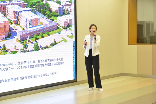 来自健康学院的"三双"教师周萍萍以“穿越文化墙,引领学生成长”为题,与大家分享了在协和的一年是如何通过形式多样的文化交流活动来引领学生成长,让学生在感受外国多元文化的同时,也提高了他们的英语口语表达能力,培养他们多元性的文化思维。同时,也通过丰富多彩的弘扬中国文化的活动,向国际学生展示了天华学子的风采。赴协和的四位老师在顺利完成硕士学业的同时,也协助17届中美康复的学子以平均89.6的分数顺利毕业,为下一届学子建立了浓厚的学术及文化氛围。