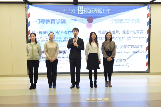 然后,在名师工作坊环节,孟菲斯团队及协和团队分别以“他山之石,可以攻‘育’”与“融通中外,知行合‘医’”为题,分享了他们在学前教育、小学教育,以及康复治疗和心理咨询专业的学习心得。其中孟菲斯团队的柴豪頔老师分享了她的研究课题“如何提升学生在线上课程讨论中的社会存在感”;隗钟乐老师分享了共建式线上微课的授课模式,强调生生互动的重要性;夏雪老师分享了差异性教学理念在幼儿园教学中的重要性;朱学敏老师分享了2019年NAEYC全美幼教年会见闻,以及基于幼儿提问的STEM教学设计思路;赵俊儒老师分享了项目式教学及其在我校的教育实践应用。