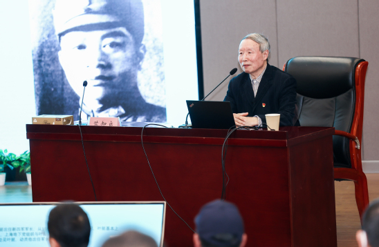为紧密结合学习贯彻总书记给上海新四军研究会百岁老战士们的重要回信精神,会议还特别邀请了教育部重点研究基地都市文化研究中心主任、上海市委党史专家宣讲团成员、上海师范大学教授苏智良作《新四军与上海》专题报告。苏智良教授从上海是新四军的孕育地、是新四军的物资筹措地、是新四军的兵员输送地、是新四军的情报搜集地、是新四军的战略基地五个方面详细分析了上海在新四军革命斗争中的独特地位。
