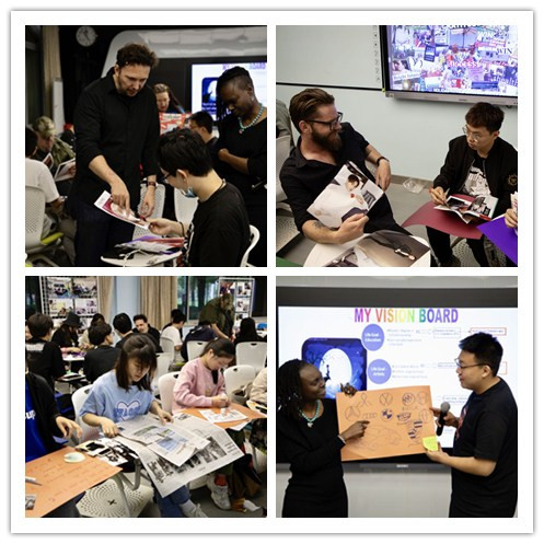 2021年5月18日及19日下午,英语第二课堂活动之文化碰撞、寓教于乐在日162举行。其中,寓教于乐活动的主题是“Vision Board”(愿景板),由外教Glenis和Yolanda主持,并邀请了Keegan、Dusty、Paul、Dr. Paul等全体外教以及国际交流处处长胡珍、副处长梁杰等多位中教与40余名来自各专业的同学一同参与活动。活动伊始,Glenis向大家介绍了何为“Vision Board”以及需要遵循的“SMART”原则,即 “specific”,“measurable”,“actionable”,“realistic”和“time-bound”。讲解之后,Yolanda向大家呈现了自己制作的愿景板,并让同学们谈谈她的目标是什么。在Yolanda和Glenis的鼓励下,同学们纷纷举手,踊跃发言。随后,大家以小组为单位讨论并制作自己的愿景板,外教参与到各组学生讨论中,引导组员们运用英语进行讨论和表达自己的观点。自2017年以来,国际交流处主办的英语第二课堂活动形式总计 11 种,如 Book Club(读者俱乐部)、English Corner(英语角)、English Tables(英语圆桌)、Future Career(未来职业)、Photographer(摄影师)、Culture Collision(文化碰撞)等,每学期2-3种,安排在周一至周四,为期十三周。英语第二课堂活动的开展不仅为热爱并希望提高英语的同学提供了良好的交流平台,拓展了英语学习渠道,而且营造了校园国际化氛围,提升了师生国际视野和英语学习热情,获得了参与师生的广泛好评。希望更多的同学能够加入到第二课堂活动中,用心体验,用心交流,不负青春,不负韶华。
