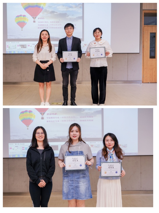 (学前教育学院院长助理张萌及康复治疗学专业主任徐欣为学生颁奖)
