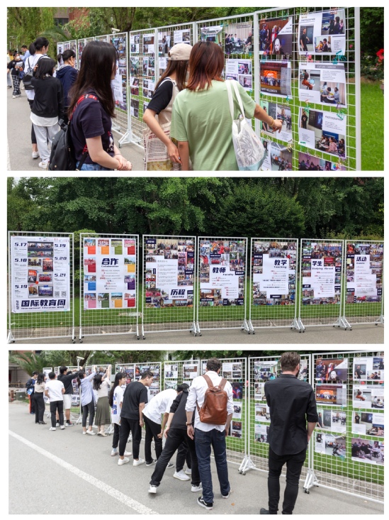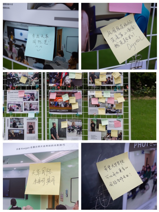 2021年5月19日中午,国际教育周路演活动在小桥顺利开展,活动展示了我校国际化发展以及第二课堂活动集锦,其中,通过历程、合作、教师、教学、学生、活动等六个主题全面回顾了我校国际化之路中的重要时刻。同学们饶有兴致地找寻自己以及自己熟悉的中教及外教身影。活动当天,外教也准备了各种有趣的活动,同学们踊跃参与外教互动活动,通过“你画我猜”、“教我一句家乡话”等活动拉近了与外教们的距离。活动的最后,同学们将自己对学校国际化的美好祝愿贴在展板上,留下了一道靓丽的风景线。此次活动,不仅是学校国际化发展的展示,同时也是让国际化更近一步贴近学生、让学生更近一步感受学校国际化氛围的重要方式。
