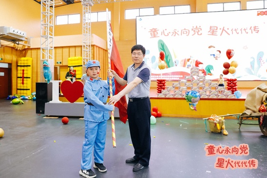 活动开始,副校长、工会主席吴国兴代表学校工会向前来参加活动的孩童代表授旗。本次活动由学校教职工家庭参与,同时工会还诚挚邀请了校企合作单位和社区共建单位的家庭前来参加。