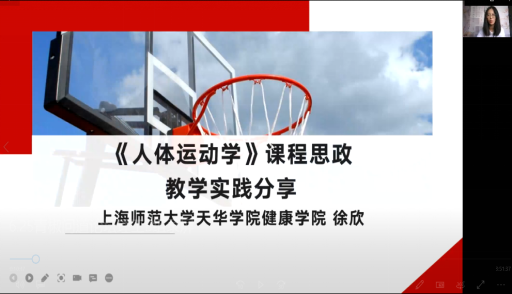 在接下来的往届优秀案例分享环节,理工组分会场里,我校健康学院的徐欣老师作为2018年优秀学员进行课程思政教学案例的分享,并与华东政法大学蒋圣力老师一起主持了分会场的研讨会。徐欣老师以康复治疗学专业的专业基础课程《人体运动学》为例,分享了课程思政实践教学的一些感想和体会:在开展课程思政教学的过程当中,首先需要自身对于课程思政教学的接纳和认同,然后再着力潜心钻研和思考如何来落实课程思政。并用“腰椎运动学与腰痛”作为案例向大家分享了课程思政融入专业课教学的具体做法。