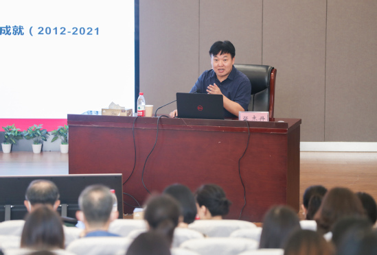 9月3日上午,学校党委中心组(扩大)党史学习报告会暨马克思主义与文化研究系列讲座于晖华楼报告厅举办。会议邀请上海师范大学马克思主义学院院长、中央马克思主义理论研究和建设工程专家、国家社会科学基金重大项目首席专家张志丹作“中国共产党百年意识形态建设之道”专题讲座。会议由党委书记陆建非主持。