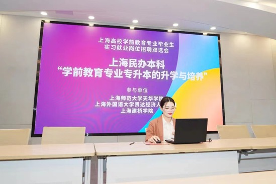 此外,我校还与上海市幼儿园园长研修培训项目组联合主办了上海高校学前教育专业毕业生实习就业岗位线上招聘双选会。本次线上招聘会通过天华幼教“幼教圈”小程序举办,共有100余家幼儿园与教育机构参与,面向11所举办学前教育专业的高等院校2022届毕业生,并通过腾讯会议线上平台提供了升学指导直播,旨在助力学前教育专业高校毕业生更高质量、更充分就业。