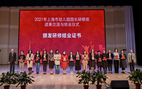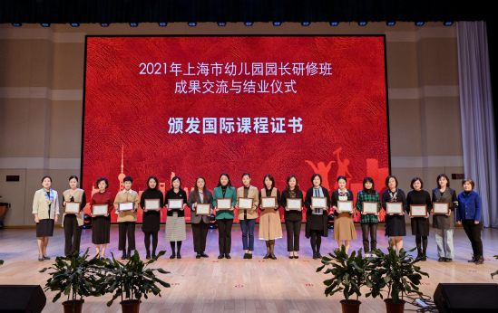 11月5日,2021年上海市幼儿园园长研修班成果交流与结业仪式在学校大礼堂成功举办。结业仪式上,来自16个区的上海市第五期骨干园长研修班,第二期初任园长研修班的144名成员们领取了研修结业证书、国际课程证书,44名园长被评为优秀学员。上海市教育委员会人事处副处长张瑾莅临指导。参加活动的还有来自兄弟院校和合作单位领导及专业负责人,学校董事会及党政监领导,学前教育学院教师代表。