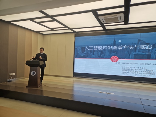 11月26日中午11:30分,图书馆四楼报告厅举行第41期博士沙龙,本期沙龙隆重邀请同济大学CIMS研究中心主任、上海市两化融合研究中心(同济大学)主任王坚教授以《人工智能知识图谱方法与实践》为题,与大家分享了大量人工智能领域的新概念、新工具、新实践等。我校40余名教师积极参加了学术活动,人工智能学院院长凌旭峰主持。