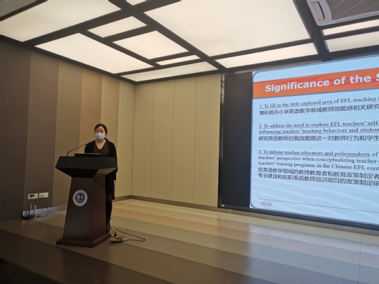 张云博士的博士研究题目是《教师自我效能感、英语水平与教学实践关系研究》,是一项针对小学英语教师的调查研究。教师自我效能感(Teachers’ Self-efficacy Beliefs)的强弱直接影响着教学过程和教学效果,教师的自我效能感强, 教学活动中就会表现出对自己的教育能力具有较高的自信心,取得较好的教学效果。许多证据表明,教师的信念比教师的知识更影响其教学行为。在交流过程中,张云博士介绍了自己的博士论文课题研究的理论基础和研究方法,也分享了该研究结果,在哪些方面可以对小学英语专业建设、小学英语教师的专业发展和在职小学英语教师培训项目提供相关参考依据。该项研究填补国内关于小学英语教师效能感相关研究的空白,对小学英语教师教育者、及小学英语教师的专业发展提供了有益的借鉴。最后,张云博士也分享了很多非常实用的教学研究资源。