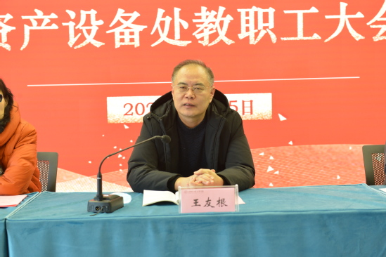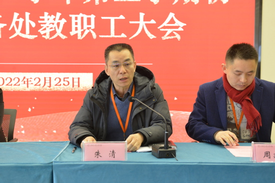 2022年2月25日下午13:00,资产设备处在图书馆报告厅召开新学期教职工大会,学校副校长王友根,资产设备处处长朱清,副处长董海霞、周建文,图书馆馆长吴志荣,资产设备处全体教职工出席了大会。大会由资产设备处副处长周建文主持。
