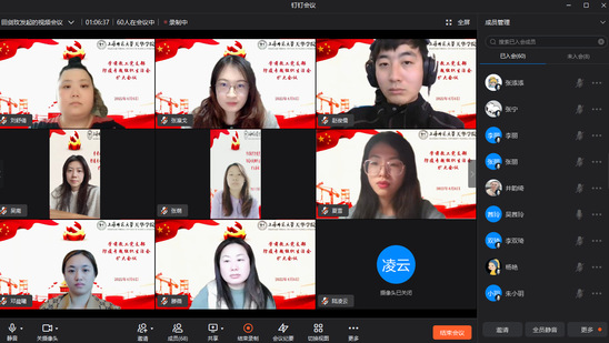 4月6日中午11:00,语言文化学院党总支通过线上钉钉直播的方式,组织召开了“防控疫情保平安,克服疫情促发展”专题组织生活会,42名正式党员,78名积极分子,21名群众参加会议。