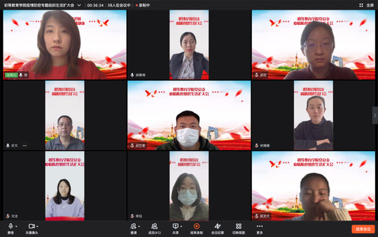4月6日中午12:10,初等教育学院党总支召开疫情防控专题组织生活(扩大)会,出席会议人员有学院全体党员同志、全体教职工。