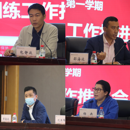 本学期参与中英文辩论训练的学生共有8187人,涉及244个班级,编有840个训练小组,涉及48名辅导员带训,任务重,体量大。为更好的推进训练工作,学保处常务副处长包静波结合目前辩论训练工作的开展进度,提出七个“抓”的辩论训练工作指导要求,结合本学期训练组织工作的安排提出具体工作要求。会上,学保处副处长刘洪伟就开学至今校园安全稳定工作与校园疫情防控做阶段总结,并对下阶段的校园常态化防疫和维稳工作提出要求。学保处副处长邵海波、学保处副处长兼校团委书记杨央分别就校园宿舍管理、垃圾分类投放工作和经典阅读工作进行点评和布置。