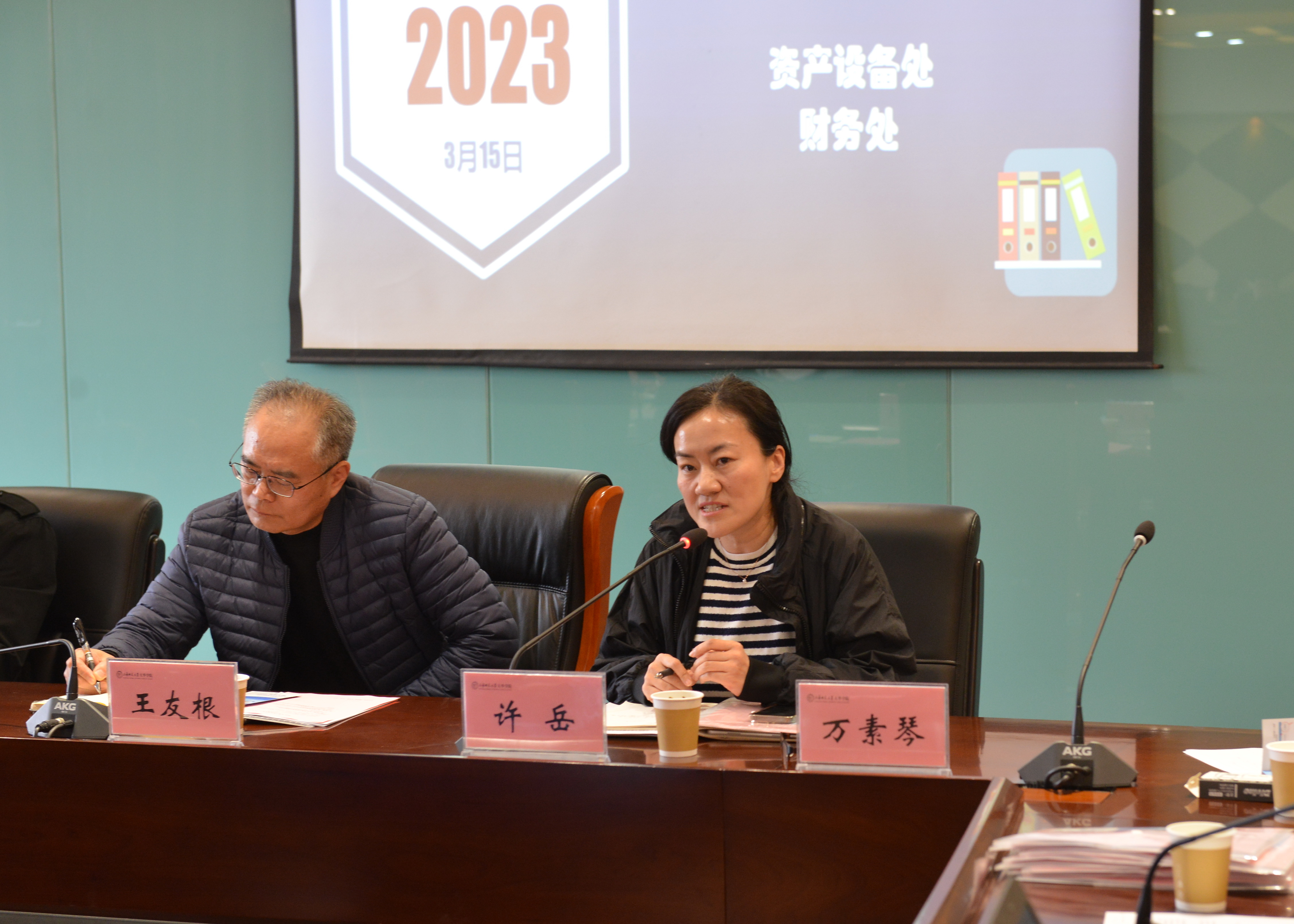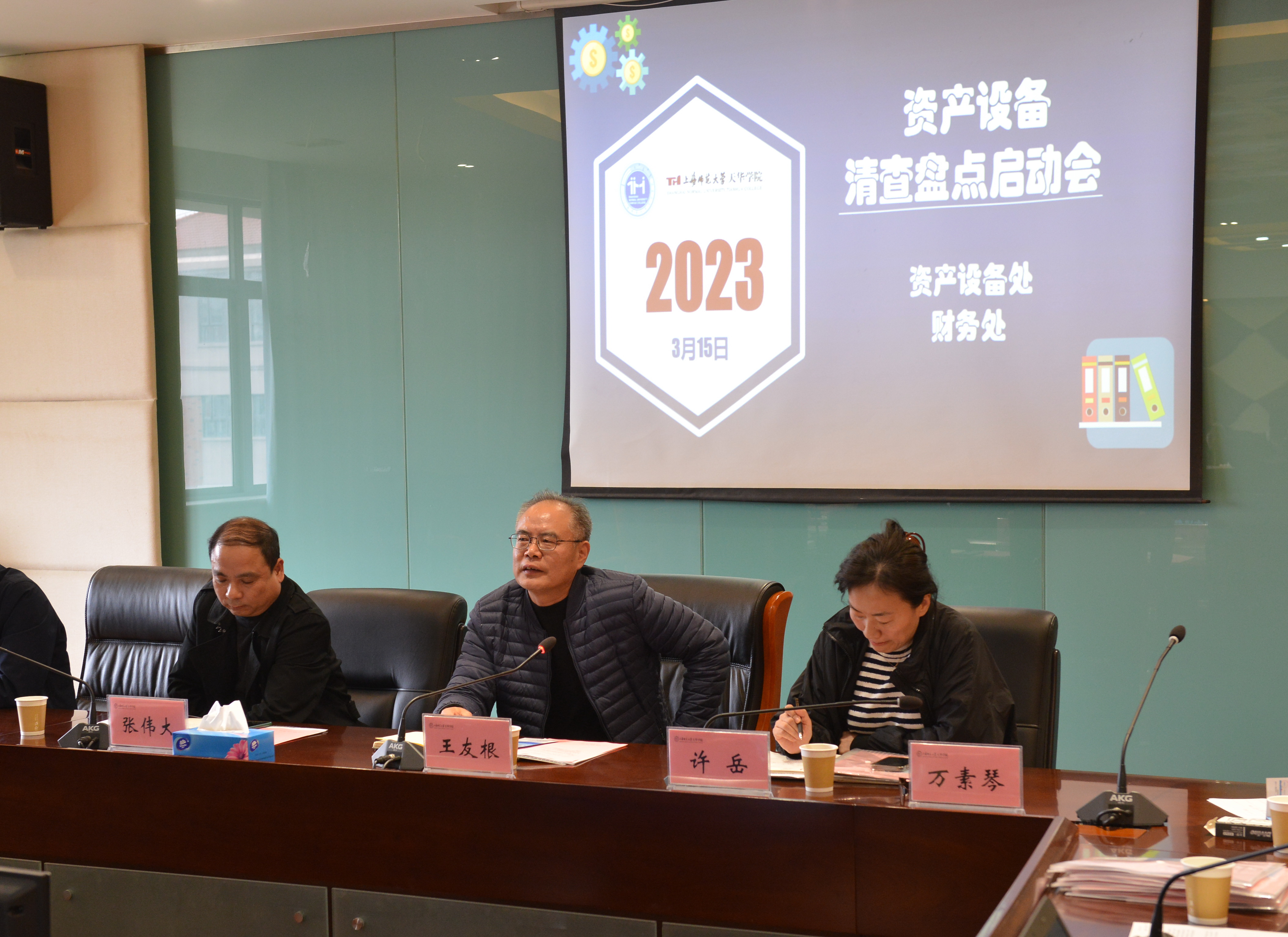 2023年3月15日中午11:30,我校在明华楼五楼会议中心召开资产设备盘点工作部署会,学校党委副书记许岳,副校长王友根,监察委副总校监张伟大,各二级学院、职能处(室)资产管理负责人和资产设备管理员参加了会议。会议由资产设备处处长朱清主持。