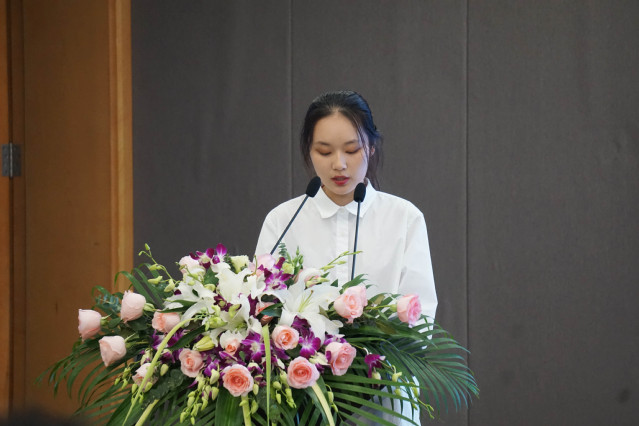 第七届“金话筒”校园主持人决赛圆满落幕第七届“金话筒”校园主持人决赛圆满落幕用话筒展现自我,用精彩点亮青春!2020年10月29日下午16:30,第七届“金话筒”校园主持人决赛在晖华楼小剧场拉开帷幕。出席本次活动的评委老师有:通识学院副院长聂晓晶,学保处副处长、校团委书记杨央,学前教育学院专业教师孙娜博士,学前教育学院党总支副书记朱可,各二级学院分团委书记及学生代表到场观看比赛。经过各二级学院的分赛区比赛,共有八名学生脱颖而出,进入校级决赛。本次决赛分为三个环节。在第一环节“初露锋芒”中选手们简单进行自我介绍后围绕“最美逆行者”这一主题展开朗诵,选手们融情于文,外化为音,配乐相伴,娓娓道来,生动自然,各具特色,用自己的方式表达着对抗疫工作者的赞美与感激之情!在第二环节“看图说话”中,选手随机抽取一张图片,进行阐述。她们冷静应对、自信大方地向观众描述着图片中的内容,临场应变能力和语言表达能力都展示了她们较强的基本功。经过前两个环节的精彩角逐,共有四名学生脱颖而出进入第三环节“模拟访谈”,比赛迎来“赛点”。在此环节,选手们随机选取一个话题,对一位评委老师进行模拟访谈。评委老师通过反问、不直面回答等多种方式“刁难参赛选手,选手们2020-11-09 -