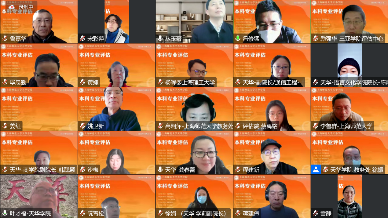我校委托上海市教育评估院对15个专业开展本科专业达标评估线上考察为全面提升本科教育教学质量,切实推动党的二十大精神在我校教育教学工作中落地生根,根据教育部《普通高等学校本科专业设置管理规定》(教高〔2012〕9号)等文件工作要求,12月23日全天,我校委托上海市教育评估院,组织评估专家组,对我校学前教育、小学教育、康复治疗学、应用心理学、旅游管理、艺术教育、汉语言文学、物流管理、互联网金融、电子信息工程、通信工程、计算机科学与技术、网络工程、英语和日语等15个专业开展本科专业达标评估线上进校考察。本轮评估,是建校以来第二轮全校范围的专业评估,分3个批次完成,专业全覆盖。2021年上半年,顺利完成了本轮第一批次8个专业的第三方评估工作;2022年起,第二、三批次的15个专业对标《专业质量国家标准》和《上海高校本科专业达标评估指标体系》,全面自查,撰写自评报告、佐证材料,形式审核后根据专家组的评议意见进行修改。考虑到疫情因素,为保障全校师生健康安全,本次专家进校实地考察采取在线形式开展,但形式不走样、内容不缩水,圆满完成了既定评估任务。12月23日上午9:20,评估启动会在线上通过腾讯会议举行。市教育评估院领导、评估专家组成员、学校领导、相关二级学院院2022-12-27