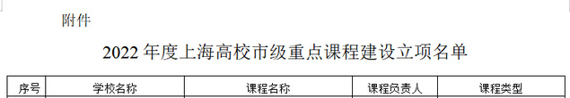 我校7门课程获2022年度“上海高校市级重点课程”项目立项课程是人才培养的核心要素,课程质量直接决定人才培养质量。根据《上海市教育委员会关于做好2022年度上海高校市级重点课程立项申报工作的通知》(沪教委高〔2022〕17 号),我校组织开展了2022年度上海高校市级重点课程的推荐申报工作。此项目限额申报,经各二级学院推荐、校学术委员会遴选,我校推荐10门课程申报2022年度上海高校市级重点课程。根据上海市教育委员会发布的《上海市教育委员会关于公布2022年度上海高校市级重点课程立项名单的通知》(沪教委高〔2022〕27号),我校7门课程通过市教委评审立项。具体名单如下图(次序以教委公布名单为准): ……自市级重点课程纳入一流本科课程建设基础后,申报难度增加,评审比往年更加严格。希望7门立项课程,珍惜机会,在重点课程建设期间,进一步深化课程改革和创新,优化课程管理和评价机制,巩固课程建设成果,向一流本科课程目标努力! 供稿 | 科研处2022-07-11 -
