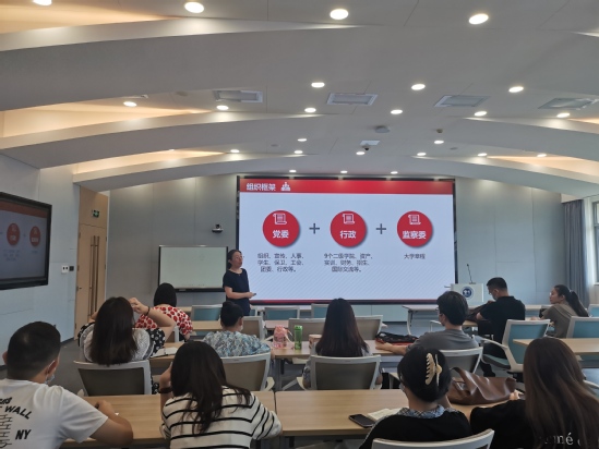 转变角色,融入天华——2021年新教师培训圆满结束新学年伊始,9月1日---9月10日,2021年30名新入职教师在远程教学中心进行了为期十天的新教师培训。在这段时间里,副校长、人事处处长吴国兴、人事处常务副处长曹卫、宣传部长齐砚奎、教务处常务副处长徐振、科研处副处长郑宁、学保处常务副处长包静波以及初等教育学院副院长胡雅楠、优秀教师徐欣为新教师做各项专题培训,为新教师们尽快转变角色、融入天华做了全方位的悉心指导。9月1日下午,人事处常务副处长曹卫首先向新教师详细介绍了学校人事管理制度,让新教师深刻感受到了学校这个大家庭从各方面对教师的关心与爱护,同时也了解了人事各项事务的基本流程,以便能够更快地适应崭新的校园生活。(人事处常务副处长曹卫做培训)9月2日上午,初等教育学院副院长胡雅楠以生动活泼的“活力课堂”带领大家进入了英语口译世界,在这别开生面的课堂中,胡雅楠老师向大家详细讲解了“活力课堂”所具有课堂新特征,将教学设计中的创新点进行了介绍。本次“活力课堂”展示,不仅英语专业的老师获益匪浅,其他专业的老师们也从中吸收到不少创设“活力课堂”的教学经验。(初等教育学院副院长胡雅楠做培训)接下来,健康学院徐欣老师为大家带来了《人体运动学》专业2021-09-14 -