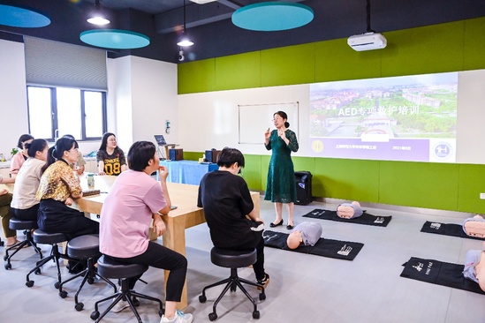 学校工会成功举办教工培训系列活动6月18日中午,学校工会在图书馆4楼STEAM实验室举办教职工培训系列活动。工会常务副主席曹卫主持活动内容。(活动一AED专项救护培训)为迎接贯彻落实“健康上海2030”规划纲要,进一步完善应急体系,增强教职工的安全防范意识的自救互救能力,保障职工的生命安全。学校工会邀请合恩急救机构的专业课程讲师,为教职员工开展以AED设备使用为核心的职工急救技能培训。培训师为老师们讲解急救常识、AED的使用指征、正确操作方法和注意事项等,并现场演示了心脏复苏、AED应急救护技能。课程采用理论知识讲授与救护技能实际操作相结合的方式,让参与者真实感受到了学习AED应急救护的重要性和必要性。整个培训过程中,参与者们认真学习、积极互动,现场气氛非常热烈。老师们纷纷表示,通过教学器具现场练习心肺复苏和除颤仪操作,熟悉了除颤仪的操作流程,增强了科学救护意识和能力。活动二家味暖心烘焙急救培训结束后,校工会继续开展教职工蛋糕烘焙制作活动,以“家味暖心烘焙 献礼建党百年”为主题,旨在丰富学校教职工业余生活,传递“家味与爱的理念”,共庆建党一百周年。为点燃现场活动气氛,指导老师准备了两个小游戏(“重走长征路”和“比比看2021-06-21 -