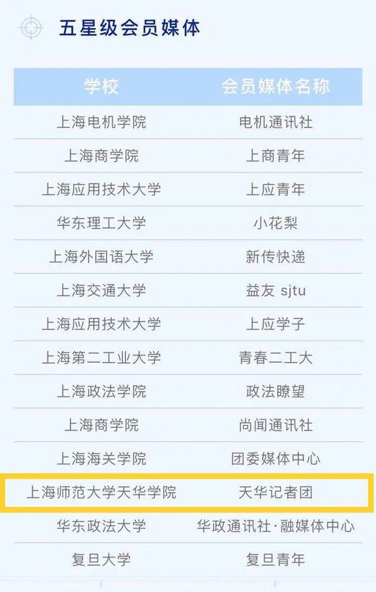 天华记者团获选2020-2021年度中青校媒(上海)五星级会员媒体4月9日,“上海校媒”公布2019-2020年度中青校媒(上海)星级会员媒体名单,沪上高校共50余家会员媒体参评。我校“天华记者团”脱颖而出,荣获五星级会员媒体称号。中青校媒(上海)中青校媒(上海),是中国青年报下属中青校媒的重要组成部分,旨在加强上海市高校学生媒体间的交流,实现高校资源和资讯的共享,为上海高校学生媒体提供一个相互学习、经验交流的平台。天华记者团隶属于上海师范大学天华学院党委宣传部是天华对内、对外宣传的学生窗口运营平台包括天华官方微信公众号、微博等同时也有专属的微信公众平台。天华记者团作为一个校级独立学生组织、天华宣传的门面担当,汇集了大批热爱写作、新闻创作,具备一定的写作基础、摄影摄像基础以及后期平面基础的宣传精英走在主旋律时代浪尖,传播正能量是记者团一直以来的目标和宗旨。记者团与学校各学院学生组织成立了天华学院新媒体联盟,联盟内资源共享,将记者团宗旨“追踪学校热点,传递新闻信息,展示师生风采,宣传天华风貌”发扬光大。记者团致力于培养“全方面宣传人才”,定期邀请沪上资深报刊记者、自媒体运营专家及985、211、双一流高校教师,对记者团成员进行新闻写作培训、摄影培训与新2021-05-07 -