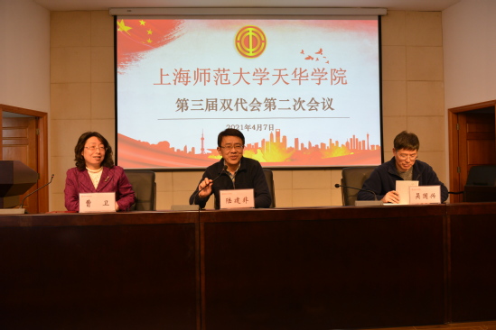 学校圆满召开第三届双代会第二次会议4月7日中午,学校第三届双代会第二次会议在明华楼报告厅隆重召开。79位代表出席会议,会议由工会常务副主席曹卫主持。首先,副校长吴国兴为大家解读了《上海师范大学天华学院关于调整课时费的实施意见》。为全面落实本科教育质量工程,激励全体教师研究学情、研究课程,上好每一堂课、上好每一门课,提升学校的人才培养质量,根据董事长在全校干部大会上的讲话精神,在充分调研同类高校课时费的基础上,学校根据教师职称,相应调整课时单价。同时吴老师强调:只有敬重教师,学校事业才能走得更稳、更远;只有教师先行,其他群体的待遇改善才有可能跟上;希望在场的代表们投上自己庄严的一票。随后,经过全体与会代表投票表决,全票同意通过了《上海师范大学天华学院关于调整课时费的实施意见》。本实施意见经学校校务委员会、学校双代会通过后,自2021年3月开始实施。最后,党委书记陆建非代表学校党政监发言讲话。天华学院一贯实施以“教师为主体,高端人才为重点”的强校战略,学校办学以“人才”为先,做到“事业留人、感情留人、待遇留人”。学校正处于转型发展与“十四五”事业发展规划的关键时期。学校党政监全力支持这一系列引才用才政策的推出,竭尽全力把能2021-04-08 -