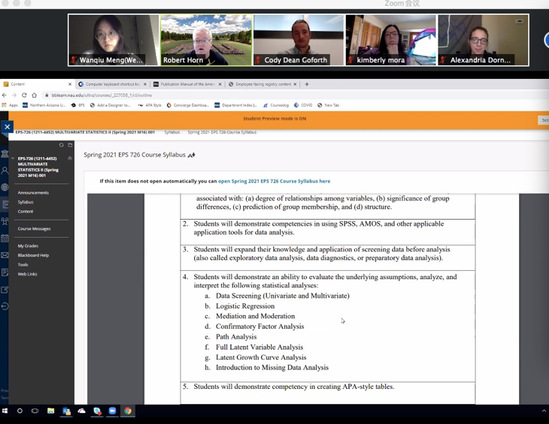 学校首批美国北亚利桑那大学博士课程学习进展顺利在学校董事会和领导们的关心和支持下,我校美国北亚利桑那大学首批博士(课程与教学论方向教育学哲学博士)教师们的课程学习有条不紊地进行。在四个学期的课程与教学论理论知识和方法论课程钻研的基础上,2021年春季大家依据自身的研究兴趣和学校特色专业发展需求,选修了不同领域的课程,包括学前教育课程、方法论、英语教育等。在充分掌握专业领域系统知识的同时,拓展知识领域与视野,广泛涉猎多学科的基本知识与技能,运用跨学科的前沿理论视野及方法推进细致深入的研究。(图片一、博士班教师于凌晨4点到6点与美国同学一起上课)繁忙的课程学习之外,各位教师的学术研究也在持续推进。博士班教师定期与各自导师进行学术研讨。克服地理障碍,通过屏幕相互面对面交流,解决理论和实践上的问题,将研究进一步落实。(图片二、博士班教师定期与导师通过视频会议跟进研究现况)与此同时,博士班教师在春季学期二月下旬参与了北亚每年一度的学术论坛(Lapan Forum),该论坛是北亚学术活动的重要组成部分。本次论坛持续近八小时,克服时差的困难,博士班成员通宵达旦全员参加,并且多位教师参与了“孵化会话”项目,与美国教授及博士学生们一起进行深度学术研2021-03-23 -