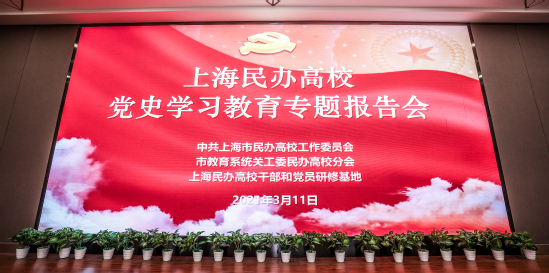 党委组织参加民办高校党史学习教育专题报告会 全面启动党史学习教育3月11日下午,上海民办高校党工委在我校晖华楼报告厅召开党史学习教育报告会,贯彻落实中央、市委和市教卫工作党委关于开展党史学习教育的部署要求,学习贯彻习近平总书记在党史学习教育动员大会上的重要讲话精神、给上海市新四军历史研究会百岁老战士们的重要回信精神。市教卫工作党委副书记、市教委副主任、市民办高校党工委书记闵辉对上海民办高校开展党史学习教育作部署,上海师范大学教授苏智良作《新四军与上海》专题报告。会议由我校党委书记陆建非主持。闵辉在动员讲话中指出,中央决定开展党史学习教育,是在中国共产党百年华诞的重大时刻和“两个一百年”历史交汇的关键节点,站在统筹中华民族伟大复兴战略全局和世界百年未有之大变局的时代高度所作出的重大决策。民办高校要深刻认识开展党史学习教育的重大意义,领会把握核心要义和重要内容,把思想和行动统一到习近平总书记重要讲话精神和党中央决策部署上来。通过学习教育,切实增强“四个意识”、坚定“四个自信”、坚决做到“两个维护”,不断提高政治判断力、政治领悟力、政治执行力,切实做到学党史、悟思想、办实事、开新局。闵辉强调,民办高校要紧扣党史学习教育的目标要求,分层分类,要采取形式多样2021-03-12 -