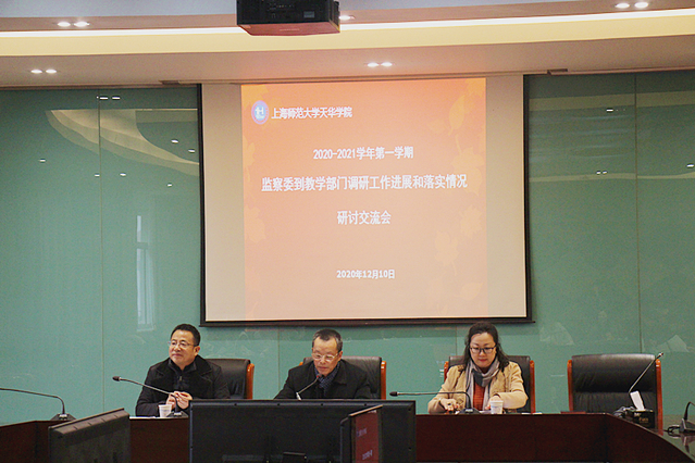 校监察委领导赴学保处调研学生管理工作我校监察委高度重视学生管理工作,对学生工作者予以高度关心与牵挂。2020年12月10日,总校监郭伟奇、校监史文赴学保处调研学生管理工作,深入一线了解本学期学生管理部门“三抓三坚持”特色育人工作的落实情况。校党委副书记、学保处处长曹云林,学保处常务副处长包静波,学保处副处长刘洪伟、邵海波,学保处副处长、校团委书记杨央及各二级学院党总支(直属支部)书记出席此次调研座谈会。(图一学生管理干部座谈会)上午9:00,学生管理干部座谈会在月华楼270会议室召开。校党委副书记、学保处处长曹云林重点围绕开学以来疫情防控常态化、新生思想稳定情况、中英文辩论训练、辅导员队伍建设、学生活动开展等方面进行汇报。他表示本学期学生管理工作时刻坚守为党育人为国育才的初心使命、坚守立德树人的根本任务,一手践行“三抓三坚持”特色育人理念,一手牢守校园疫情防控。(图二校党委副书记、学保处处长曹云林汇报本学期学生工作)上午10:00,校监史文在月华楼160会议室与来自各二级学院的14名学生代表进行深入座谈。学生们结合专业特色,围绕中英文辩论训练的开展、新生班助理朋辈引领、经典阅读的习惯养成、寝室安全卫生等内容进行介绍。不少2020-12-11 -