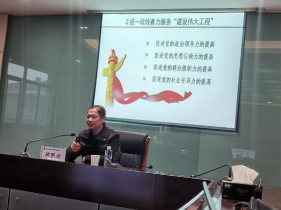 我校召开新一届统战委员专题培训会12月11日下午,校统战部在明华楼五楼会议中心进行了新一届各党总支(直属党支部)统战委员专题培训会议。学校副校长、统战部部长陈新斌作专题培训。(统战部长陈新斌在讲话)培训会围绕新时代统一战线理论的新发展、新时代统一战线工作的新部署和奋力开创新时代统一战线工作新局面共三个方面展开。陈新斌强调,统战委员要深入学习习近平总书记关于加强和改进统一战线工作的重要思想,提高思想认识,坚持大统战工作格局,重视统一战线的法宝作用。同时,要把握高校统战工作特点,强化思想政治引领,加强党外知识分子队伍建设,始终把共识教育放在首位,坚持长期共存、互相监督、肝胆相照、荣辱与共的原则。充分发挥统战干部在学校事业发展中的积极作用,广泛凝聚人心、汇集群众力量,与民主党派人士一起助推我校教育事业稳步发展。(培训会现场)2020-12-14 -
