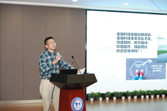科技赋能金融,金融人才重塑——金融科技人才发展论坛在我校召开2020年9月25日,由上海交通大学上海高级金融学院、深圳点宽网络科技有限公司、上海师范大学天华学院共同主办的“2020上海师范大学天华学院金融科技人才发展论坛”在晖华楼报告厅举行。会议由金融数学专业主任谢富生博士主持,上海师范大学天华学院商学院副院长、金融科技系主任翁跃明教授和上海高金金融研究院金融科技研究中心执行主任姜振兴为本次大会致辞,上海高金金融研究院研究员张伟和数字动能信息科技有限公司董事长黄嵩发表主题演讲。(谢富生博士主持)翁跃明教授在致辞中从金融科技发展之路、专业演进、专业凝练、专业展望四个方面阐述了上师大天华学院金融科技发展之路。(商学院副院长、金融科技系主任翁跃明教授致辞)上海高金金融研究院金融科技研究中心执行主任姜振兴在致辞中表示:随着金融科技高速发展,既懂金融又懂科技的人才非常稀缺,人才缺口比较大,满足不了飞速发展的风口行业。因此,高校与企业合作培养金融科技人才具有广阔增长空间。(上海高金金融研究院金融科技研究中心执行主任姜振兴主任致辞)在主题演讲环节中,上海高金金融研究院研究员张伟以《金融科技行业趋势与人才发展》为主题,从智能金融时代悄然来临、金融科技是什么、金2020-09-28 -