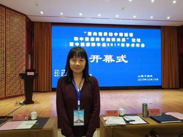 语言文化学院翁晓玲副教授出席中国修辞学会2019学术年会并获奖2019年10月19至20日,由中国修辞学会主办、曲阜师范大学外国语学院承办的“面向世界的中国话语和中国修辞学知识体系”暨中国修辞学会2019年学术年会在山东曲阜隆重召开。中国修辞学会会长、复旦大学陈光磊教授,中国修辞学会常务会长、华东师范大学胡范铸教授,曲阜师范大学副校长夏云杰教授分别在大会上致辞。本次大会参会代表近百人,来自复旦大学、华东师范大学、上海大学、华中师范大学等国内各大高校。(翁晓玲老师在开幕式现场)本次研讨会以“面向世界的中国话语和中国修辞学知识体系”为主题,分主题涵盖新媒体背景下的修辞现2019-10-23 -