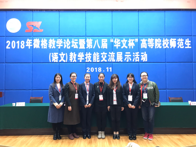 我校教育学院学生在第八届“华文杯”全国高等院校师范生语文教学技能大赛中获佳绩2018年11月9日上午,由由中国教育技术协会微格教学专业委员会主办,陕西省商洛市商洛学院承办的2018年微格教学论坛暨第八届“华文杯”全国高等院校师范生语文教学技能大赛隆重举行。2018-11-14 -