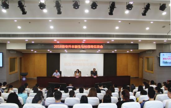 我校隆重召开2018级专升本新生与校领导见面会2018年9月12日12:00,我校在晖华楼报告厅隆重召开2018级专升本新生与校领导见面会。学院副2018-09-18 -