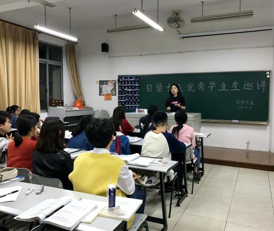 语言文化学院日语专业开展“优秀毕业生巡讲”活动2018年4月23日,语言文化学院党总支在日华楼教室开展了“优秀毕业生巡讲”活动。该活动旨在响应学校2018-05-02 -
