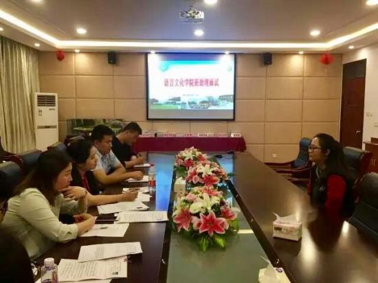 语言文化学院圆满完成2017级班助理面试工作5月11日晚上,语言文化学院2017级新生班助理面试在月华楼270室举行。学院党总支副书记杨央、刘庆2017-05-22 -