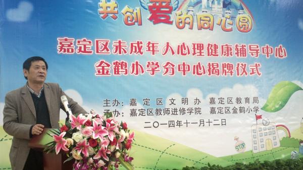健康学院领导出席嘉定区未成年人心理健康辅导中心金鹤小学分中心揭牌仪式2014年11月12日下午,嘉定区举行未成年人心理健康辅导中心金鹤小学分中心揭牌仪式。我校健康学院学2014-11-14 -