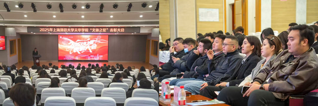 2025年上海师范大学天华学院“文体之星”表彰大会顺利召开上海师范大学天华学院于2025年12月11日下午16:30在晖华楼报告厅举行2025年上海师范大学天华学院“文体之星”表彰大会。出席本次大会的嘉宾老师有校团委书记沈捷、校团委副书记邱晟吉、校团委副书记沈洁和大学生艺术团行政教师赵一腾以及各艺术团、各特色团队以及文体类社团指导老师们。大会由陆卓婷同学主持。大会伊始,校团委学生会主席团成员王培熠同学回顾过往校园文体活动成效。校团委副书记沈洁老师宣读了“文体之星”表彰决定。与会领导老师们分别为获奖学生颁奖。梁李蒨和罗鑫麟同学作为文体之星文艺类和体育类代表分别分享了自己的成长感悟。会议最后,校团委书记沈捷老师作总结讲话。他向辛勤付出的指导老师表示感谢,为获奖团队及“文体之星”送上祝贺。至此,2025年上海师范大学天华学院“文体之星”表彰大会顺利召开圆满结束。学校也将继续加大支持,搭建更广平台、提供更多机会,让每一位同学的闪光点都被看见、被激发。2025-12-17 -