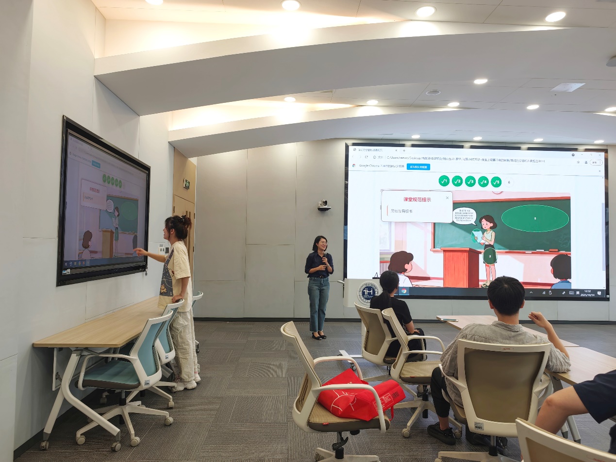 随后,井韵绮老师结合自身实践与备考研究,以“试题分析+经验分享+互动体验”的形式展开实用指导。首先,井老师分享了个人总结的备考经验——具体包括复习时间规划、结构化题型准备方法和答题策略等,帮助教师们少走备考弯路;为让教师更直观理解面试要求,井老师特别设计了“面试场景匹配”网页互动小游戏,通过趣味互动引导教师快速掌握面试中的核心注意事项,如教学语言规范、课堂节奏把控等,有效降低了面试陌生感,帮助教师们提前熟悉面试要求,从容应对考试。