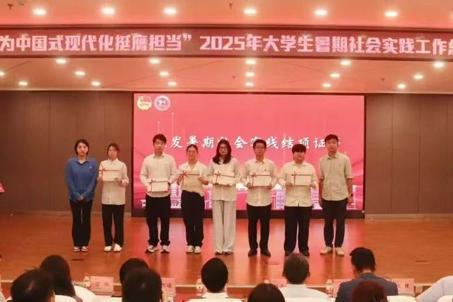 2025年9月29日下午4:30,2025年大学生暑期社会实践工作总结表彰大会于晖华楼召开。学保处处长刘洪伟、武装部部长卢建兵、学保处副处长张军、校团委书记沈捷、心理咨询中心主任黄璐、资助中心主任朱可以及各二级学院党总支书记、分团委书记和实践团队师生代表出席本次会议。本次大会由朱歌主持。