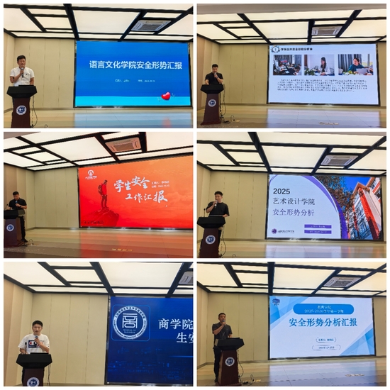 会上,张军通报了开学一个月以来校园安全情况,随后,各二级学院代表依次上台汇报,围绕开学以来排查梳理的不稳定因素和倾向性问题,结合院级实际分析安全形势,详解隐患排查结果及针对性应对思路,为全校安全防控工作提供了基层实践参考。