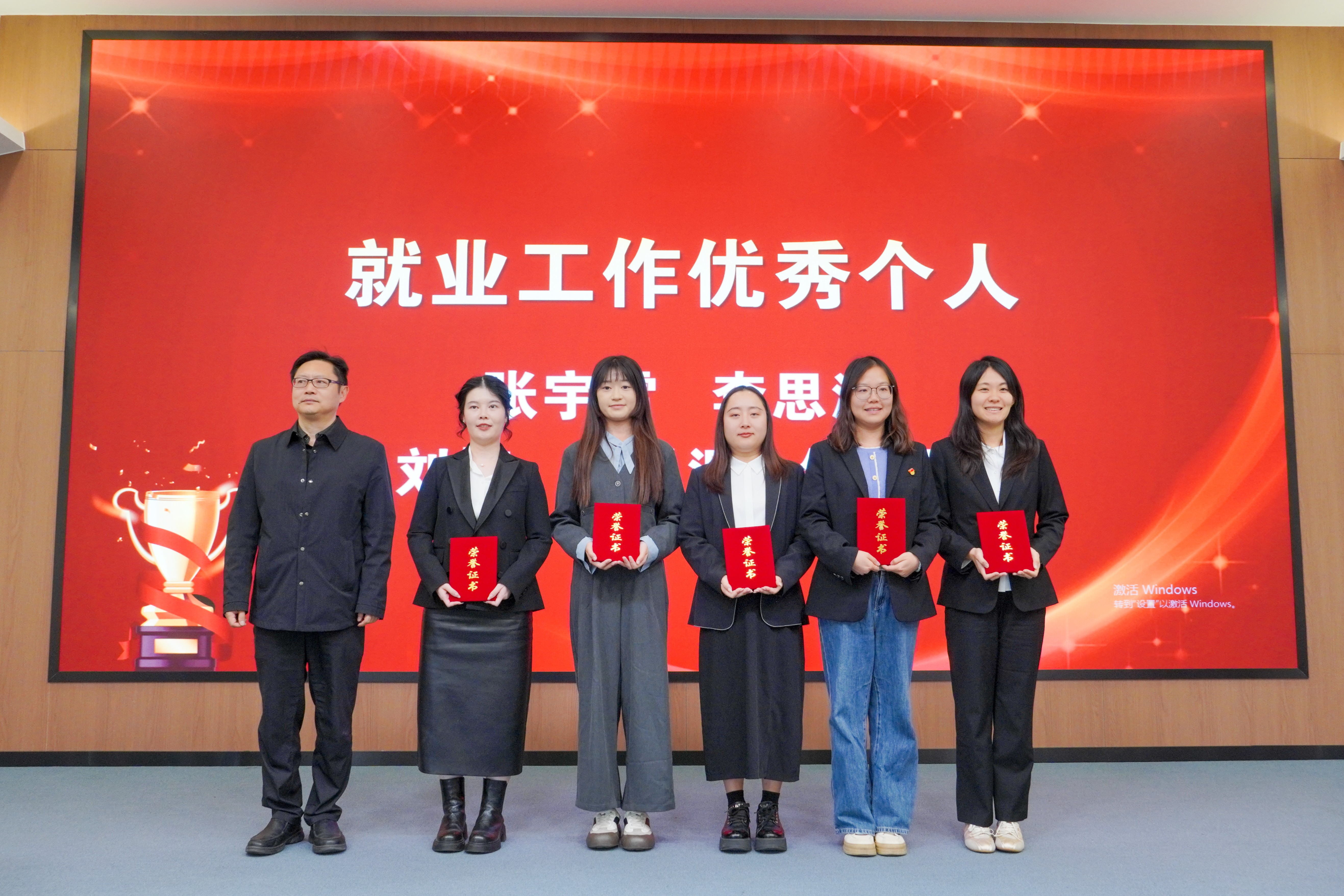 随后,校领导共同为在招生与就业工作中表现突出的集体和个人进行表彰,为获奖代表颁奖并合影留念。
