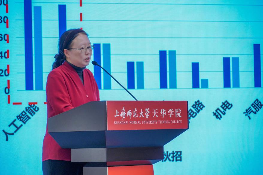 人工智能学院常务副院长吕博重点分享了学院在“招—培—就”一体化建设方面的探索。她提出依托数据分析学生诉求,以企业需求反向赋能人才培养,通过校企合作、定制化培养与强化职业价值引导,提升专业育人针对性与就业落地效果,实现人才培养与岗位需求的高匹配度。