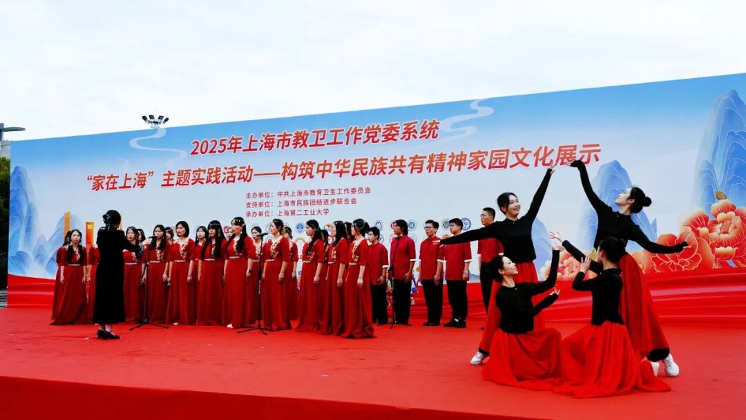 为深入学习贯彻党的二十届四中全会精神,全面落实习近平总书记关于铸牢中华民族共同体意识、做好新时代统一战线工作的重要指示精神,以文化凝心铸魂、以精神凝聚力量。11月5日,我院36名师生代表参加2025年上海市教卫工作党委系统“家在上海”主题实践活动——构筑中华民族共有精神家园文化展示活动。