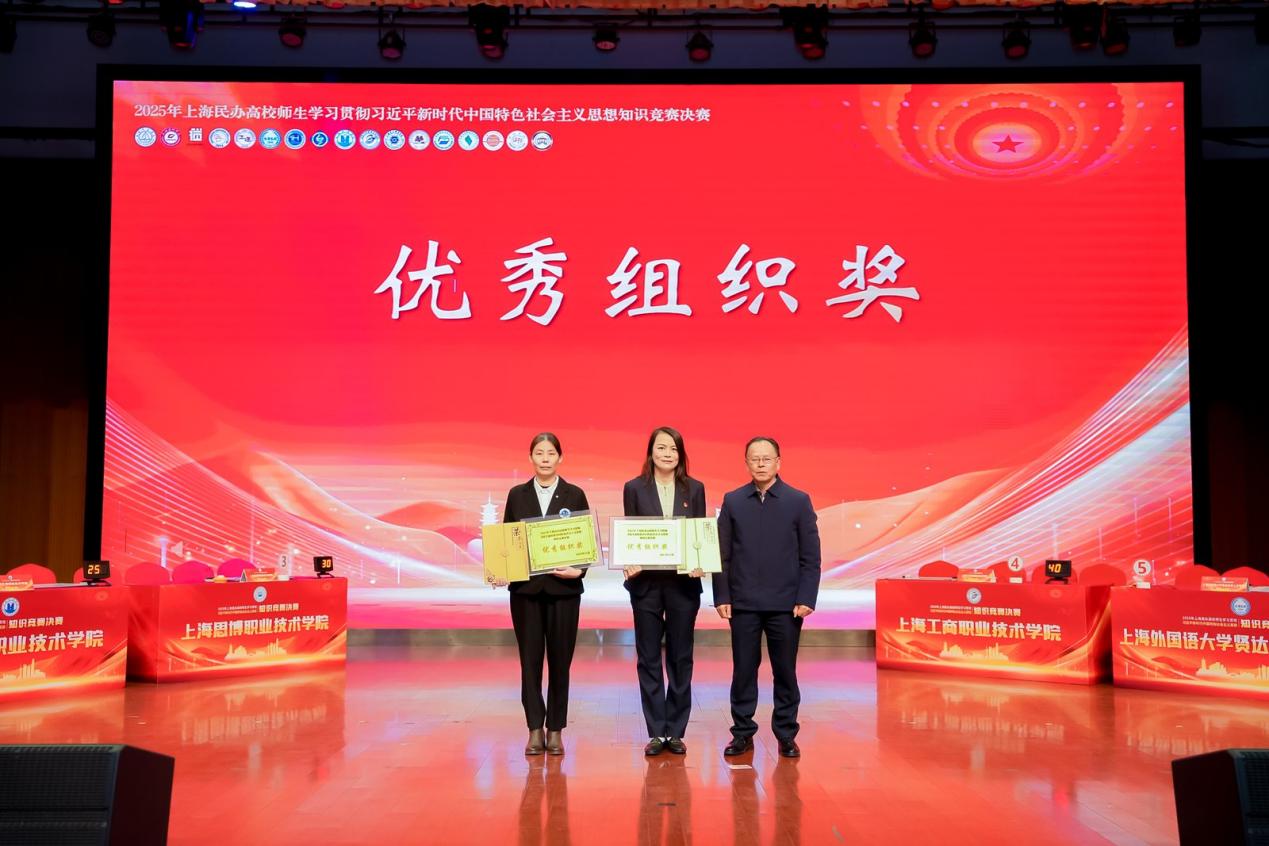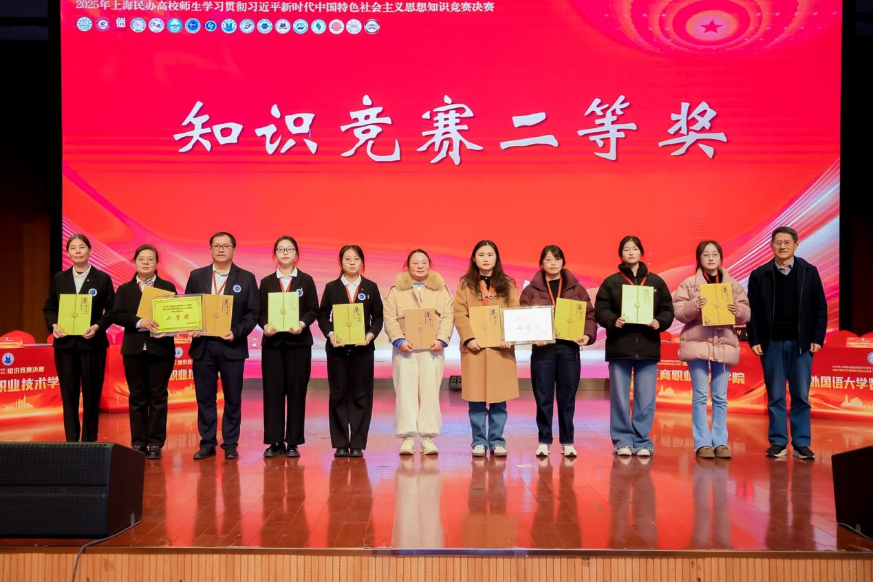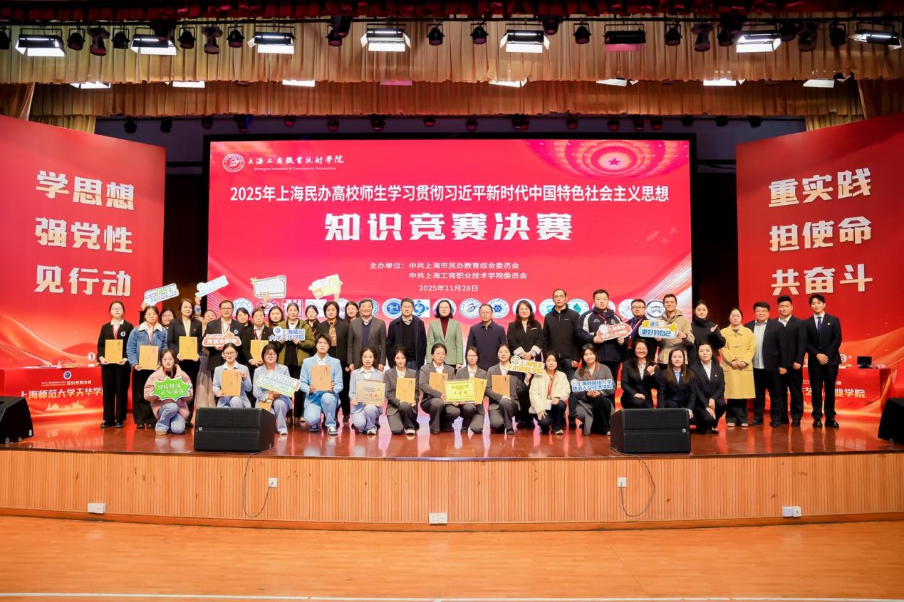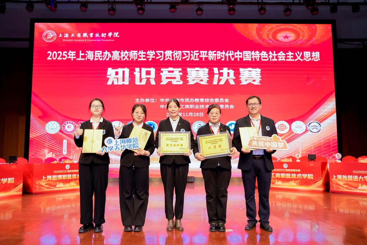 2025年11月28日,由中共上海市民办教育综合委员会指导的“学用新思想 建功新时代”2025年上海民办高校师生学习贯彻习近平新时代中国特色社会主义思想知识竞赛决赛,在上海工商职业技术学院顺利落幕。上海师范大学天华学院马克思主义学院选派由思政课教师李源泉、华芸,健康学院健康与服务管理专业学生刘芮希、商学院财务管理专业学生虞婧怡等4人组成的参赛团队,依托扎实的理论储备、紧密的团队配合斩获竞赛二等奖。在同期开展的学习贯彻习近平新时代中国特色社会主义思想主题案例征集活动中,马克思主义学院教师表现突出,荣获案例一等奖1项、二等奖4项、三等奖2项。同时,学校马克思主义学院荣获该项活动的优秀组织奖,充分彰显了学校思政教育工作的丰硕成果与师生昂扬向上的精神风采。