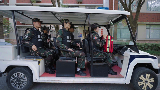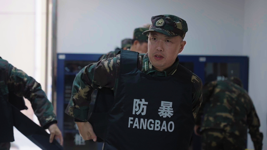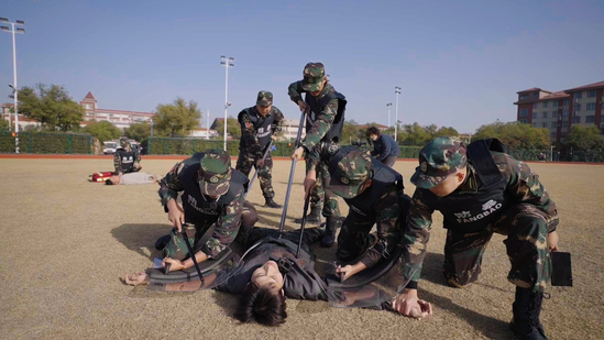 全体保卫干事迅速响应,穿戴防刺背心,携带防暴盾牌、腰叉、脚叉、防暴棍等专业器械火速抵达事发现场。行动组采用 “两翼包抄” 战术,以防暴盾牌构建起坚实防护屏障,手持防暴器械形成立体压制阵型,精准锁定 “暴徒” 位置后,果断实施腰部与腿部双重控制,仅用 3 分钟便成功制服 “暴徒”,彻底解除现场危险源。与此同时,疏导组快速开辟安全通道,有序疏导周边师生撤离至安全区域,并对现场实施物理隔离,有效防范次生事故发生。