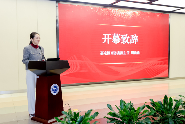嘉定区商务委副主任周婉婉在致辞中介绍了嘉定区在对接国家战略、支持企业全球化发展方面的系列举措。她提到,嘉定区围绕重点产业与企业“出海”的实际需求,举办了多场专题服务活动,有效促进了区域外向型经济的发展。她表示,未来将持续优化服务体系,支持更多企业稳健开拓国际市场。
