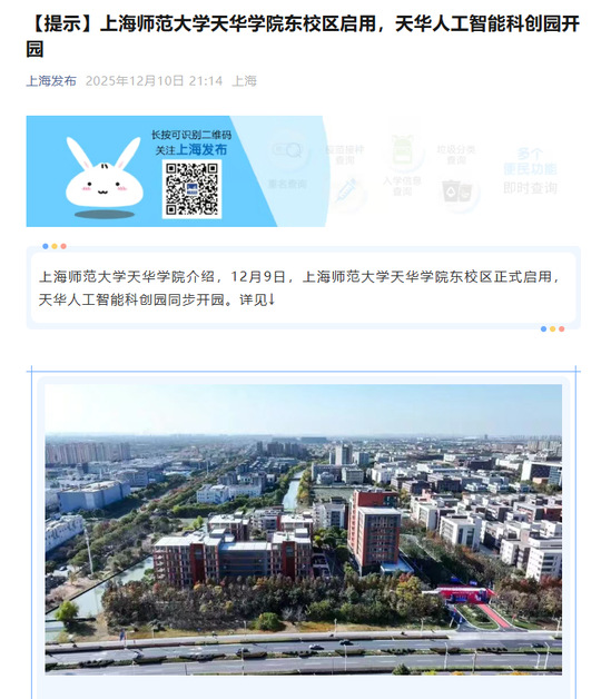 标题:【提示】上海师范大学天华学院东校区启用,天华人工智能科创园开园