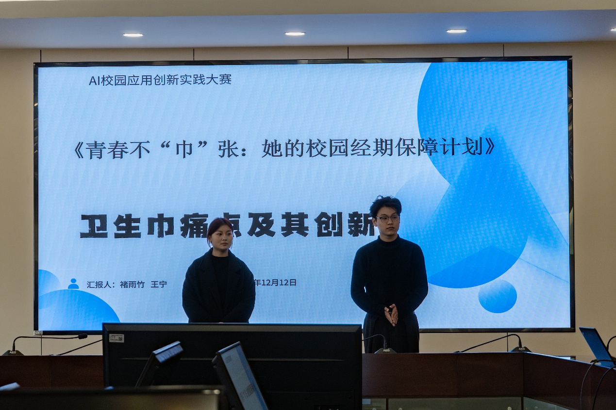 另一项二等奖作品《青春不“巾”张:她的校园经期保障计划》由人工智能学院王宁团队提出。作品直面女性卫生用品价格高、质量参差、囤货风险等现实问题,创新提出“盲测体验官”“校园自动售货机+月供计划”等模式,结合价格透明化与动态库存管理,体现了科技服务特殊群体、关爱校园女性的社会责任。