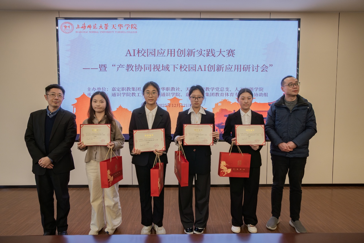 20251212日下午,明华楼五楼会议中心气氛热烈、思维激荡,“AI校园应用创新实践大赛暨产教协同视域下校园AI创新应用研讨会”在此隆重举行。本次活动由嘉定职教集团、嘉定中华职教社、天华学院教学党总支、教务处、人工智能学院联合主办,通识学院教工党支部、通识学院等单位承办,旨在推动人工智能与教育实践深度融合,构建“以赛促学、以赛促创、以赛育人”的创新平台。