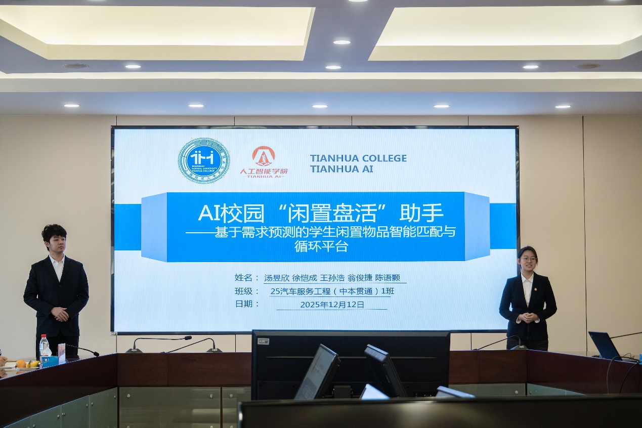一等奖作品《AI校园“闲置盘活”助手》由人工智能学院汤昱欣团队呈现。该作品聚焦校园二手交易中信息不对称、交易效率低等痛点,提出构建基于AI需求预测的闲置物品智能匹配平台,通过信用分体系、短距闪送服务等功能,推动校园资源循环利用,彰显科技向善的环保理念。